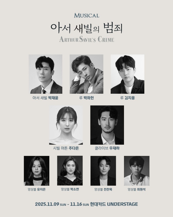 창작 뮤지컬 <아서 새빌의 범죄>는 오는 11월 9일부터 11월 16일까지 현대카드 UNDERSTAGE에서 만나볼 수 있다.