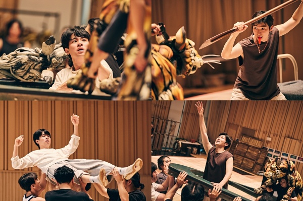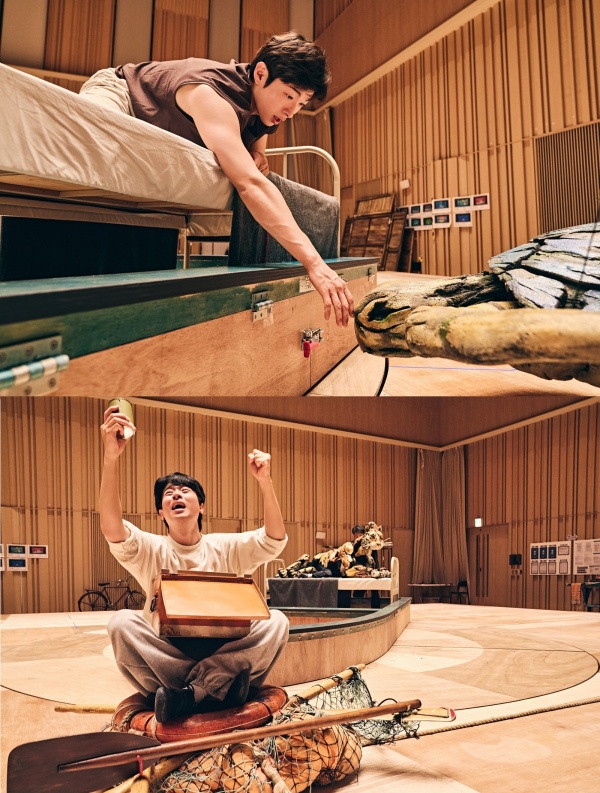 거센 폭풍우에 휘말려 혼자 남겨진 두려움, 벵골 호랑이와 생존을 두고 온몸으로 맞서는 대결을 앞둔 공포와 긴장감, 절망 속에서도 발견한 희망과 환희… 공개된 연습 사진에서 주요 장면 속 파이의 희로애락의 다양한 순간을 엿볼 수 있다. 여기에 무대와 세트를 넘나들며 달리고, 점프에 리프트 등 격렬한 움직임을 소화해내야 한다. 육체적, 감정적 역량을 한계까지 밀어붙이며 몰입한 배우의 생생한 표정이 시선을 끈다.